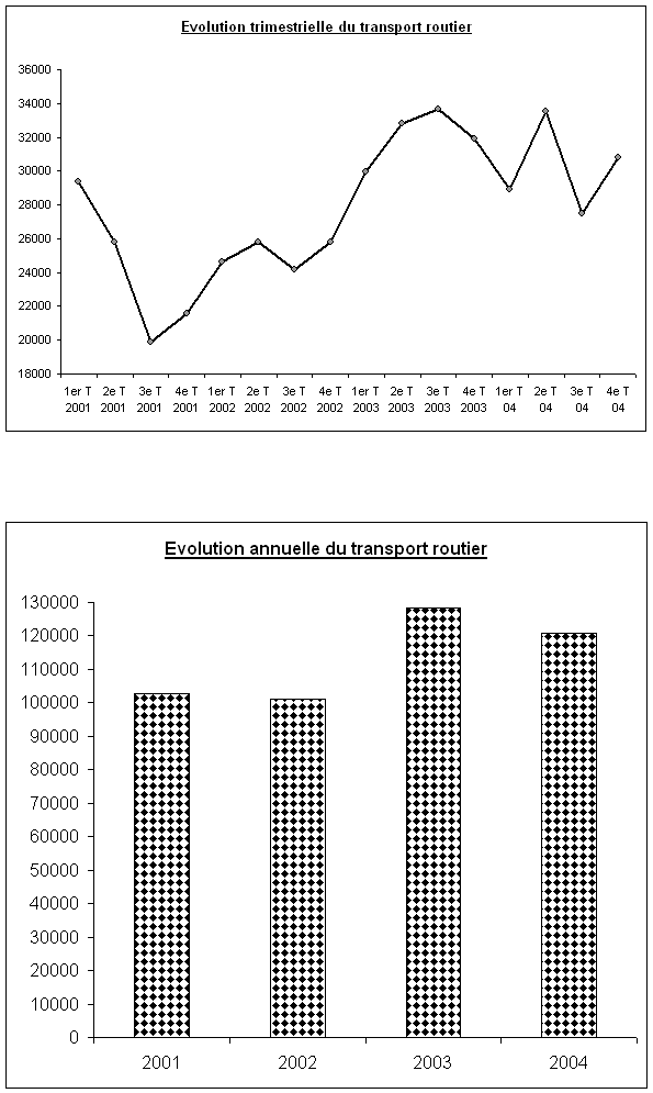 · Le trafic de camions poste du PK 51 qui s’élève à 23 519 mouvements des camions en 2004, soit 19% de l’ensemble de mouvements a connu une baisse de 3%.