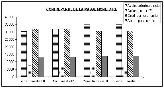 Au 3ème trimestre 2001, la masse monétaire a eu pour contrepartie :