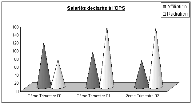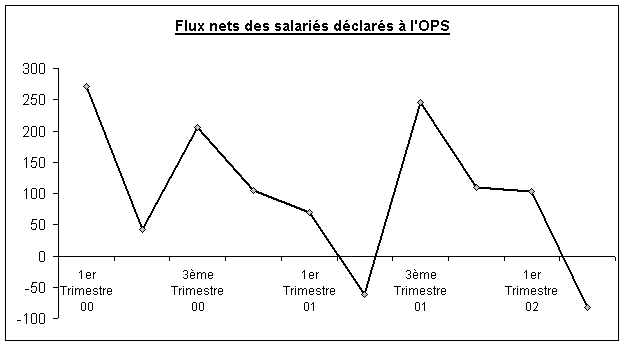 · En effet, selon les statistiques de l’OPS, le nombre d’emplois crées au second trimestre 2002 se chiffre à 67 contre 149 licenciement, soit un flux net de 82 radiations . Cette situation a déjà été constatée l’année dernière à la même période où l’OPS avait enregistré une suppression nette de 62 emplois (88 emplois crées contre 150 licenciements).