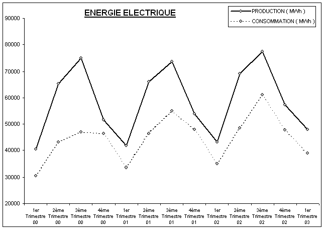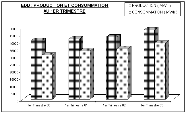 Au cours du 1er trimestre 2003, l’activité de l’Electricité de Djibouti se présente comme suit :