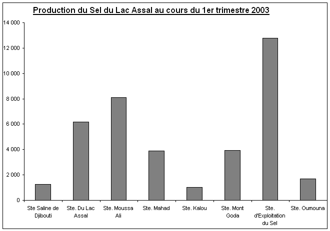 - Sté Saline de Djibouti (production moyenne 16000 tonnes / an)