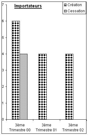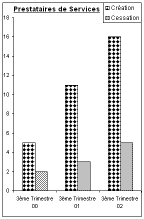 Au cours du 3ème trimestre 2002, la Sous-Direction des Recettes Directes a enregistré 71 nouvelles demandes de patentes et 12 cessations d’activités, ce qui correspond à une création nette de 59 activités.