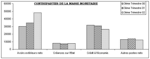 Au cours du 3ème trimestre 2002, la masse monétaire a eu pour contreparties :