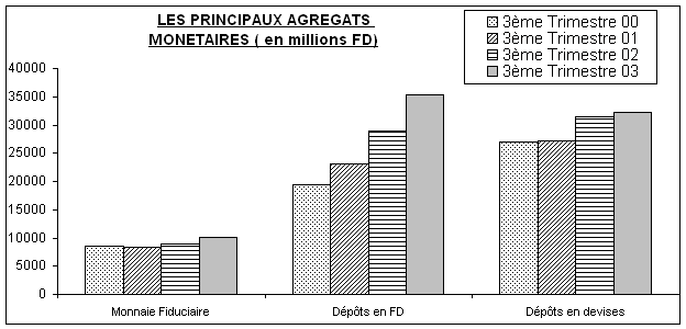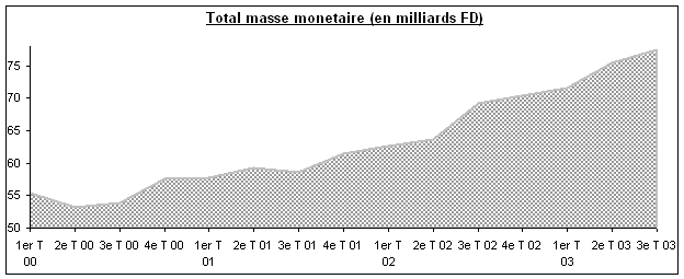 La masse monétaire totale au 3ème trimestre de l’année s’établit à 77,556 milliards FD, soit une hausse de 12 % en un an et de 2,8 % sur trois mois.