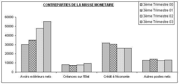 Les contreparties de la masse monétaire au 30 septembre 2003 se présentent comme suit :