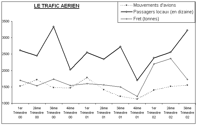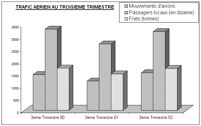 A l’instar du trimestre dernier, au cours de ce 3ème trimestre 2002, toutes les rubriques (Mouvements d’Avions, Passagers et Fret) sont en augmentation.