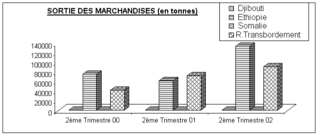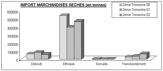 En revanche, le volume des importations djiboutiennes a baissé de 27,8% en passant de 65 622 tonnes au second trimestre 2001 à 61843,3 tonnes une année plus tard.