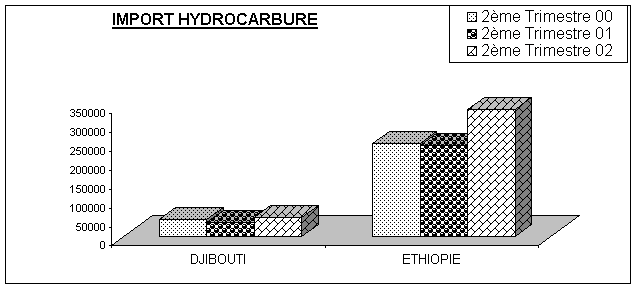 Ø Le volume des hydrocarbures au débarquement a connu, de son côté une forte hausse de 38,2 % en s’établissant à 385.742 tonnes au 2ème trimestre 2002 contre 279.169 tonnes au second trimestre 2001. Cette hausse provient essentiellement de l’envolée des importations éthiopiennes d’hydrocarbures (+ 38,7 %) qui représente plus de 4/5 du total des hydrocarbures à l’entrée du Port, mais aussi de l’augmentation des importations djiboutiennes d’hydrocarbures (+ 13,5 %).