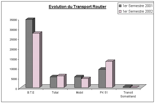 D’autre part comparé à son niveau du 2ème semestre 2001, le trafic des camions de transport éthiopien est en hausse de 8 %.