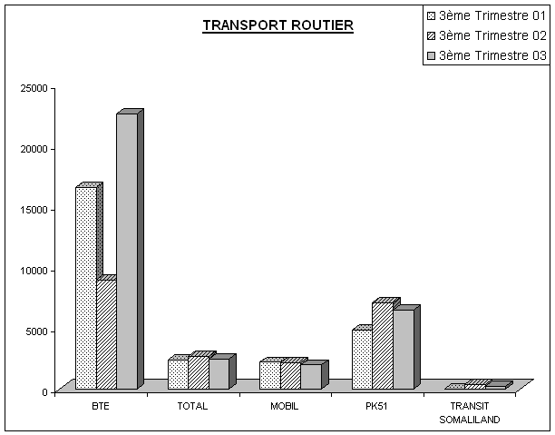 · Le transit à destination de la somaliland ( 232 mouvements) a baissé considérablement de 53 % par rapport à celui du 3ème trimestre 2002.